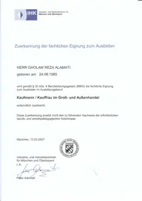 2023 - Die Anerkennung durch die Industrie- und Handelskammer (IHK) für unsere fachliche Eignung zur Ausbildung zeigt unser Engagement für die Weiterbildung und Entwicklung unserer Mitarbeiter und der nächsten Generation von Fachleuten in unserer Branche.